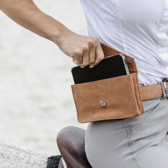 With this bag it is easy to store all kinds of phones, keys, horse treats or other necessities. The bag measures: 19cm x 11cm x 3,5cm and the belt comes in different sizes form XS to L.