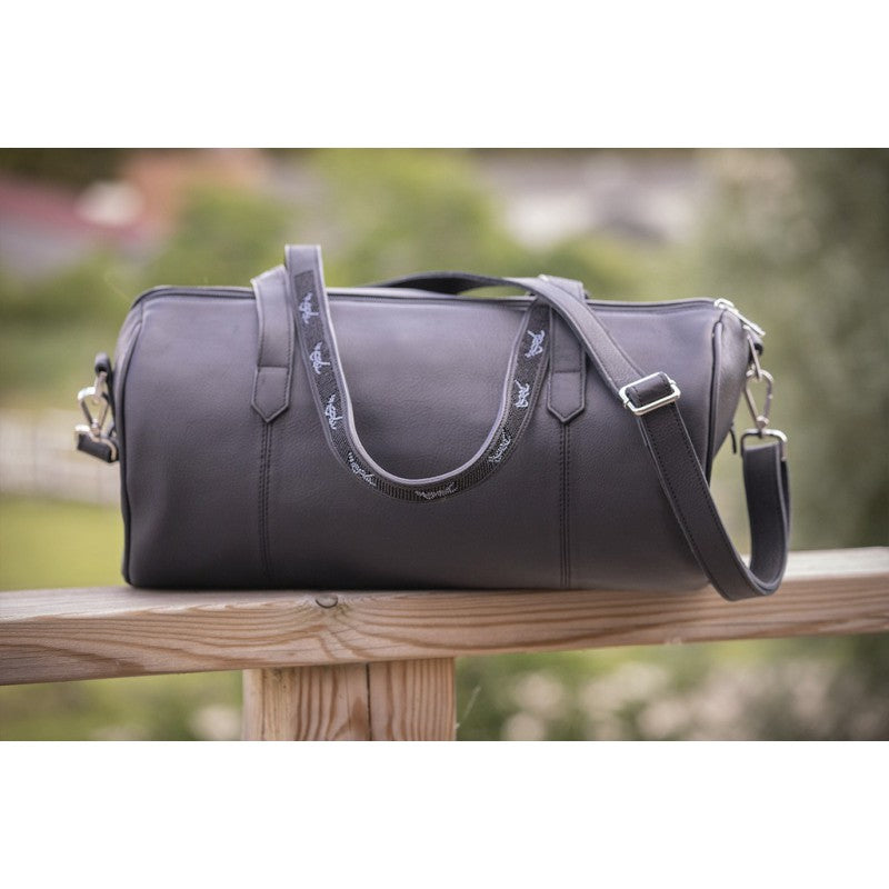 Penelope Medium Bowl Bag - made of quality leather, the weekend bag is very French chic and practical. The handles come in the classic Penelope pearls style. The brandy colored bag matchs the Penelope pearl belt and the black version matches the Pearlog Belt. The long should strap can be easily removed thanks to the hooks on both sides. The star shaped patch with Penelope log on the center front gives it the essential Penelope look. The inside is lined with beige cotton fabric and has one sipped pocket.