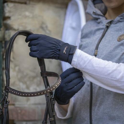 Penelope Winter Riding Gloves Comfort - The riding glove made for women riders and designed by the Pénélope Leprevost collections. This comfort model is warmer than the skinny model and is adapted to the winter season. The top of the hand is ultra-stretch for freedom of movement. The inside of the hand is non-slip. The wrist has a self-gripping fastening with a brand logo charm.