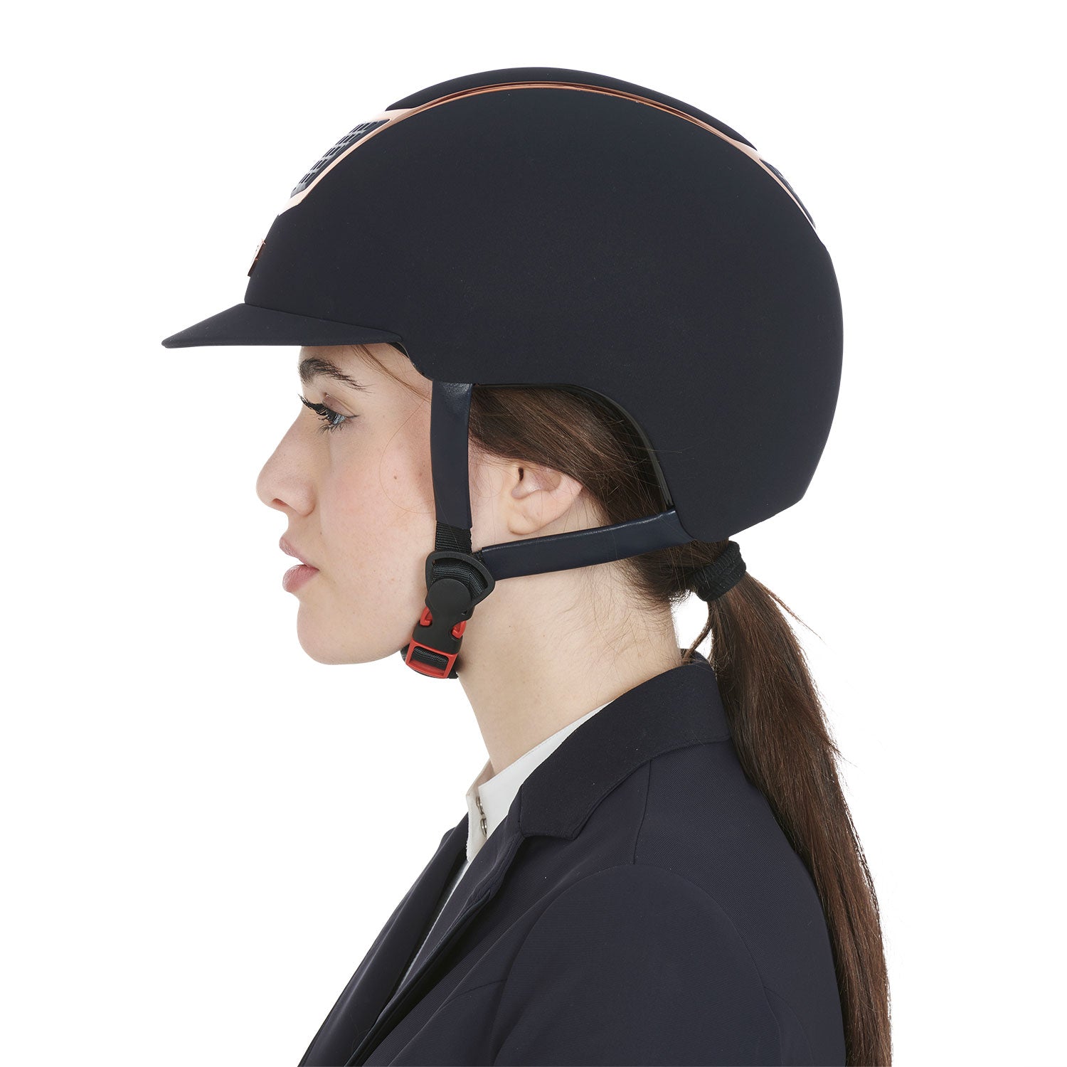 personality, unconventional, but always trendy, thanks to the velvet shell. A perfect helmet for both an everyday ride and for when you want to look special in the arena!