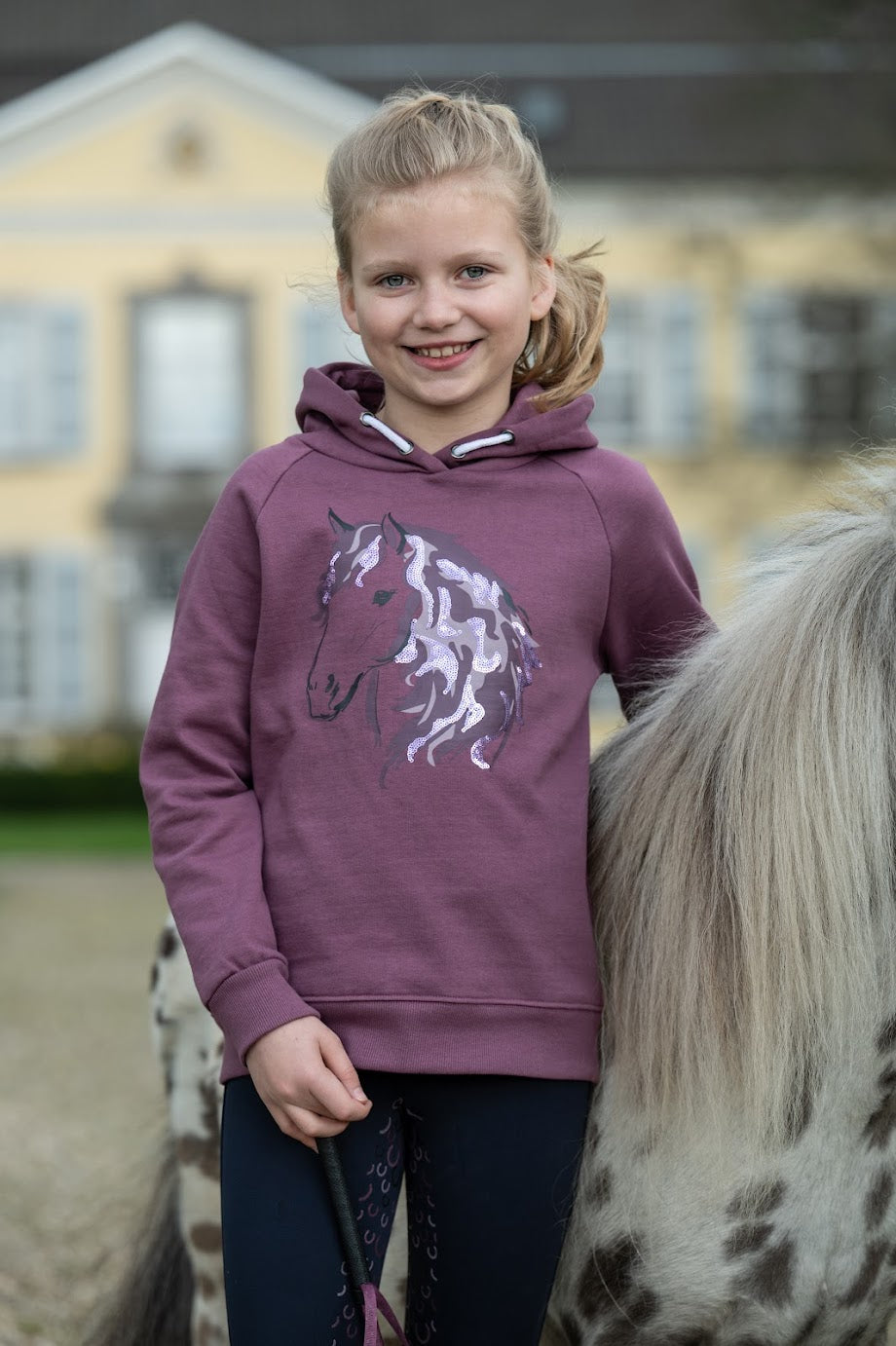 HKM Children's Hoody Alva - this pretty sweatshirt with the horse print on the front will be your child’s new favorite hoodie.