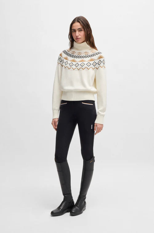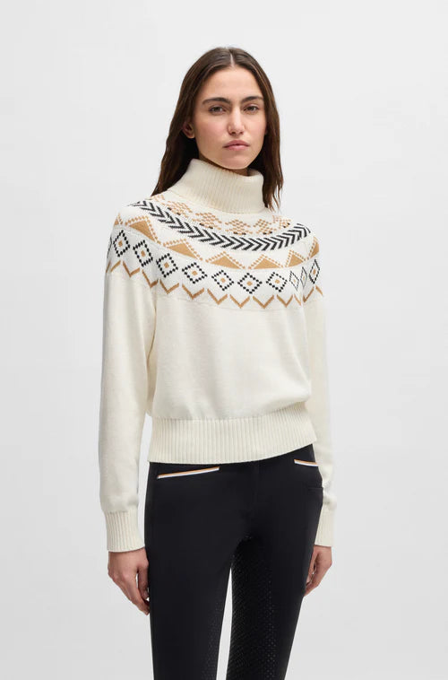 BOSS Equestrian Anuk Knit Winter Sweater Norway - stay snug and warm this winter with this incredibly stylish jumper from Boss Equestrian. Featuring a luxury Norwegian design, the sweater has an oversize collar for a great look and extra warmth as well as a ribbed waistband and sleeve ends to complete the look. Made from a special yarn mix, the sweater is breathable, making it perfect for riding in during the cooler months.