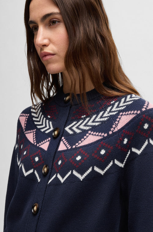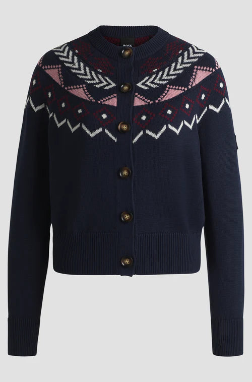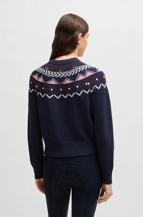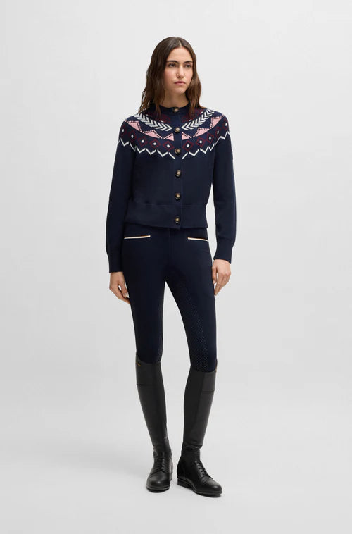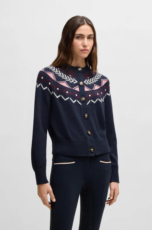 BOSS Equestrian Auriela Knit Cardigan - this stylish women's knitted cardigan is not only a statement piece in the stable, but the perfect addition to your winter wardrobe. Incredibly soft and comfortable, the special yarn mix ensures the cardigan is breathable when riding as well as offering exceptional warmth. Tha fashionable Norwegian pattern and extra large buttons give the cardigan a sophisticated, sporty look.