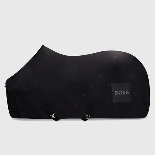 Boss Equestrian Fleece Rug Allover Logo - this fleece cooler from Boss Equestrian is perfect for travelling and when at shows. The sweat rug is designed to quickly remove moisture from your horse whilst remaining breathable. Cross over surcingle's and a tail strap help to keep the rug securely in place. Featuring an all-over double B print on breathable fleece as well as the large BOSS logo on the side for a great look.