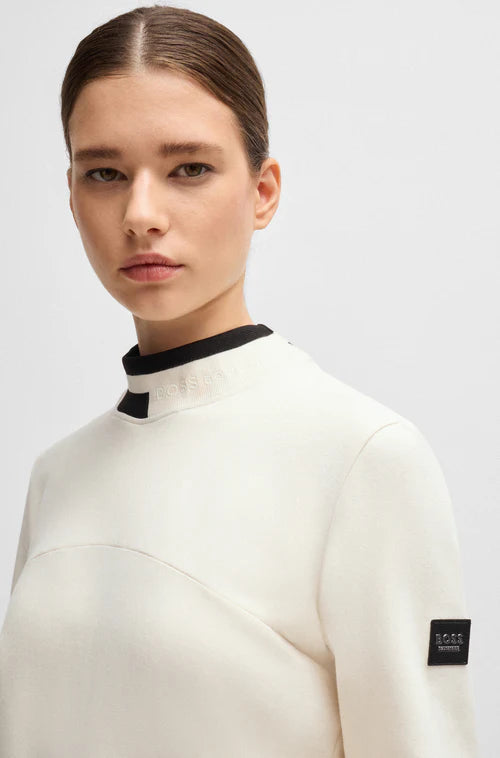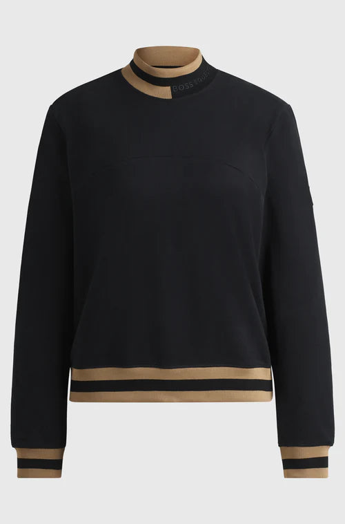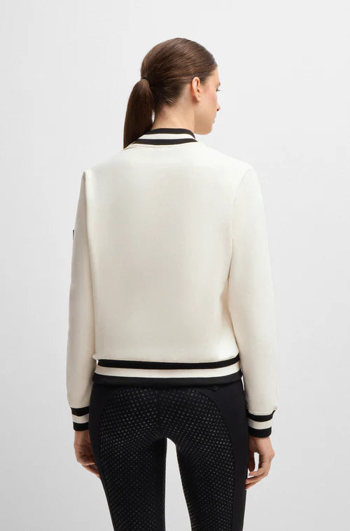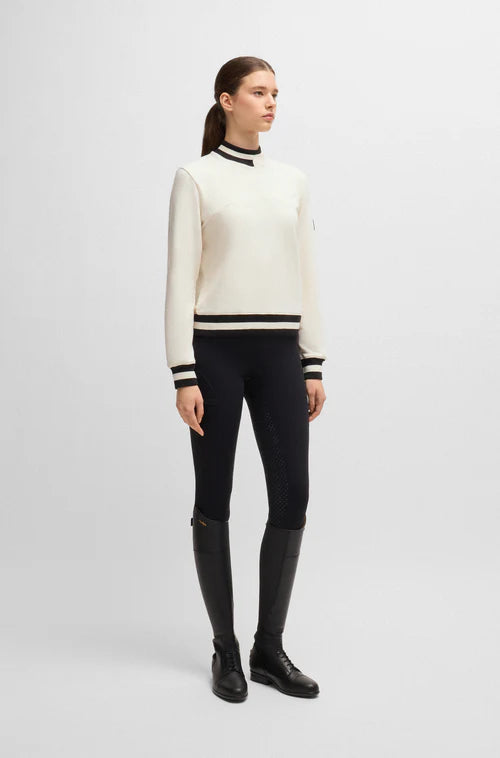 Boss Equestrian Ladies Pullover Kim - this stylish women's sweater from Boss will complement any equestrian outfit. Made from incredibly soft material, the sweater has a brushed inside for ultimate comfort. The two-tone design on the collar, waistband and sleeve cuffs creates a unique look which combines perfectly with the subtle Boss Equestrian logo on the collar.