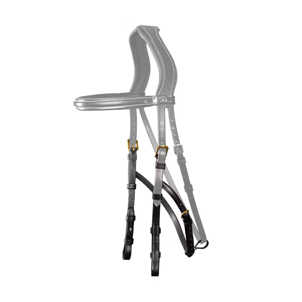 D Collection: Renowned for its beauty, the D Collection features cream-colored stitching and brass fittings for a stunning aesthetic. Crafted from Dy'on leather, this collection exudes elegance and meticulous detailing, making it Dy'on's most sought-after line. Featuring the special S-shaped headpiece for unparalleled comfort and performance, the D Collection is suitable for various horses and equestrian disciplines.