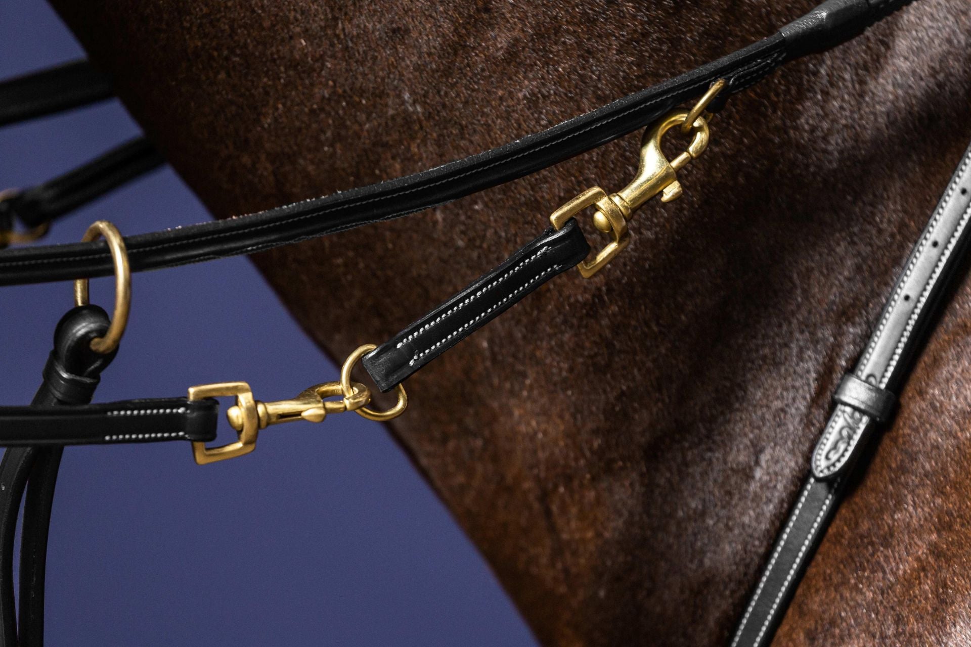 New English Collection: Sharing the technical properties of the D Collection, the New English Collection features silver fittings and stitching that matches the leather color. Popular among high-level riders, this collection combines discretion, quality, and comfort. With the same S-shaped headpiece, it's versatile across equestrian disciplines and horse breeds.
