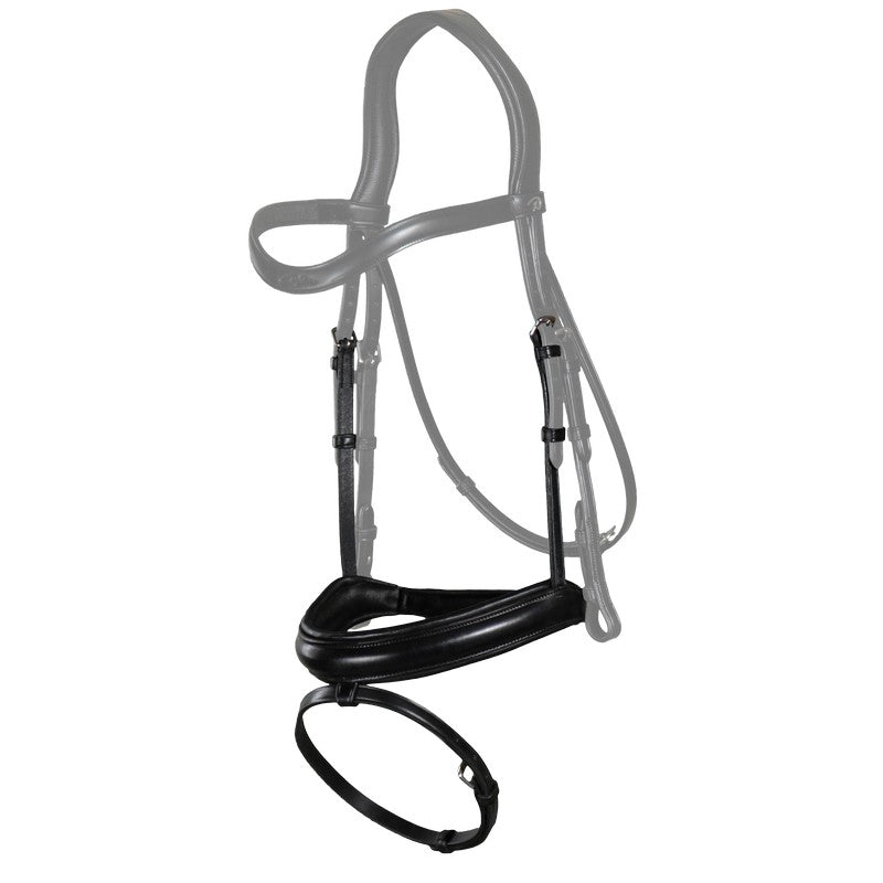 Dressage Matte Medium Noseband with Flash - you want a new, beautiful and anatomic noseband for your bridle? Here it is! With a medium sized noseband (approximately 2.8 cm thick), this striking noseband is the perfect choice if you're needing a new noseband or a different sized noseband to the rest of your bridle. Softly padded and anatomically shaped for extra comfort, the tone-in-tone stitching on the slightly raised noseband ensures a luxurious look. Ideal for a mix and match bridle from the Dy'on Dressage Collection.