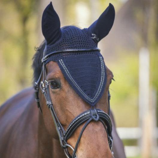 For young or very sensitive horses, soundless ear bonnets are a great choice. The veil at the bottom is a bit heavier in some to avoid it moving and the ears are padded to reduce noise levels. Of course, the horse can still hear what is going around it, but the noise levels are less intense and easier to cope with.