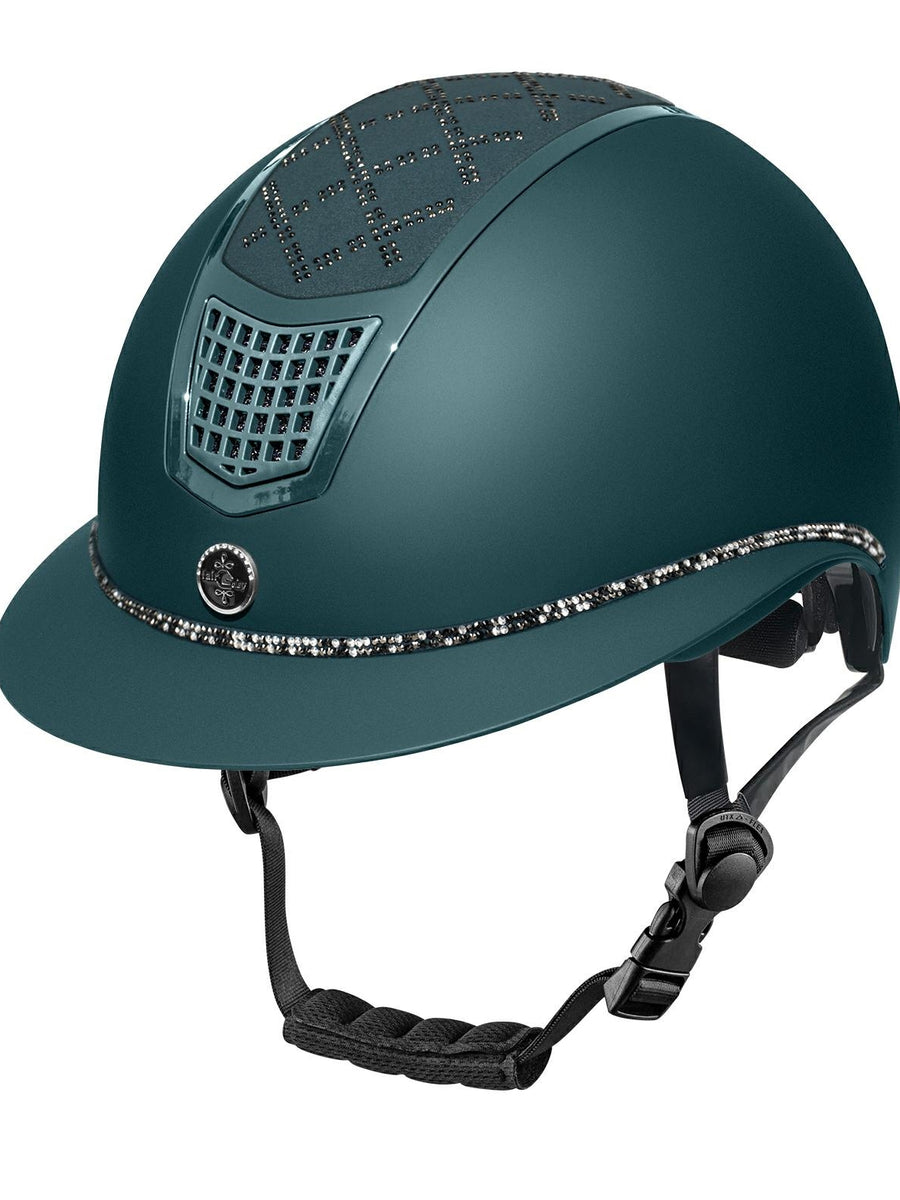 Fair Play Riding Helmet Quantinum 2.0 - is a modern, fashionably decorated equestrian helmet featuring innovative safety technology, patented EPS impact absorption, and exceptional comfort. Certified according to EN1384-2023 or VG1 01.040 2014-12 (depending on production date), this riding helmet ensures optimal protection for training and competition.