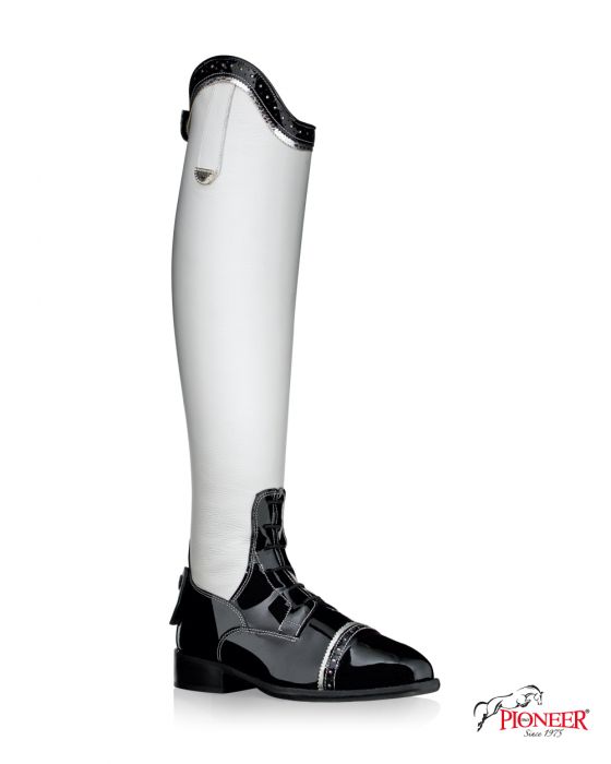 Apart from the distinctive look, a back zip, elastic front bellows and a spur rest insure functionality and comfort.