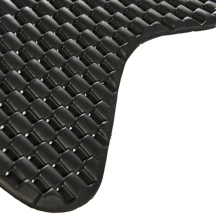 The special and innovative structure of these pads shows a multitude of little bulges with lateral holes permitting an intense, horizontally directed air circulation. Besides creating a shock-absorbing cushion effect every time they are compressed and released, the bulges generate a flow of refreshing air which keeps the back of the horse perfectly dry.