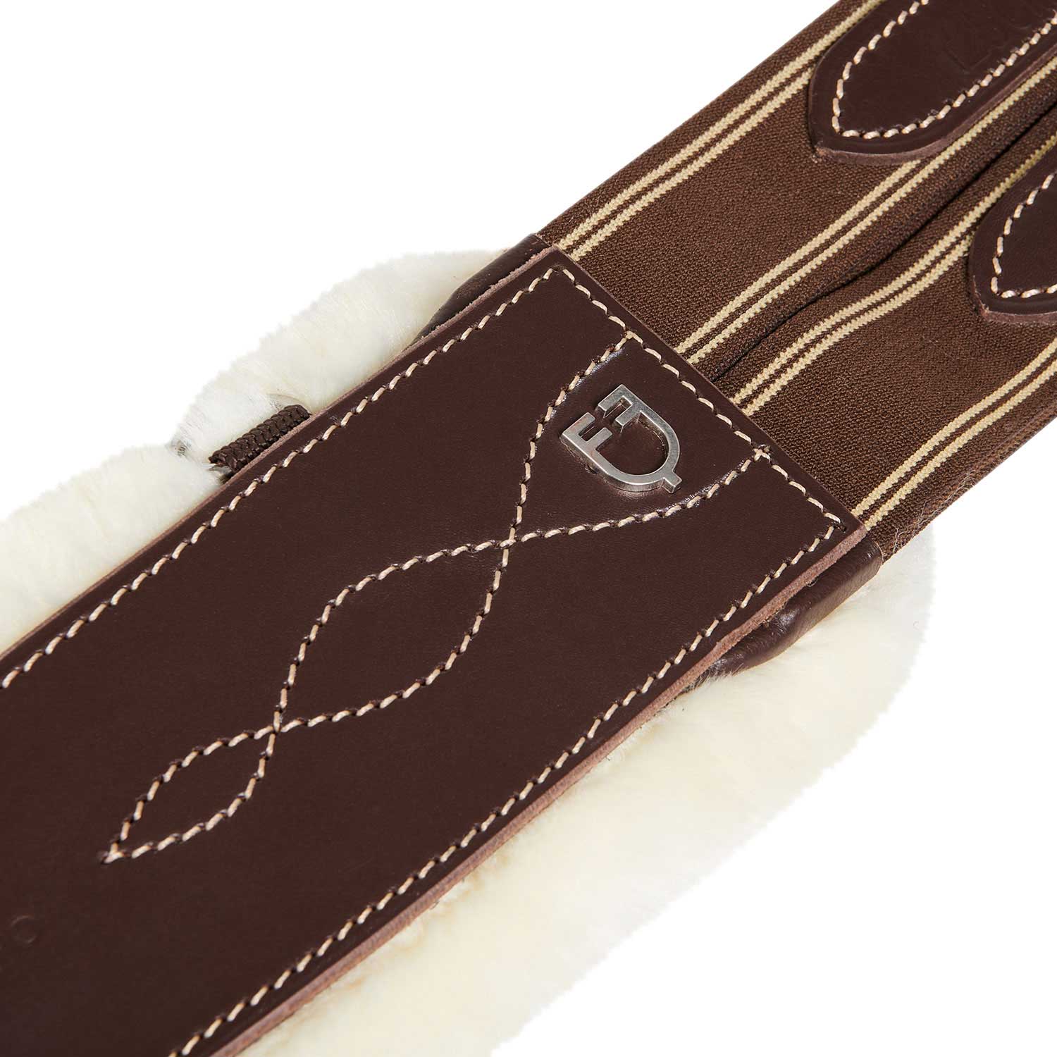 Sheepskin Girth Elizee - anatomically shaped sheepskin girth with fully removable sheepskin. Fantastic for sensitive skinned horses,the genuine sheepskin ensures natural breathability that fake fur girths cannot offer, which increases your horses comfort when ridden. The anatomic shape of the girth allows your horse to move more freely whilst distributing the pressure more evenly. The fancy stitch detailing adds a great look to this fantastic quality girth.