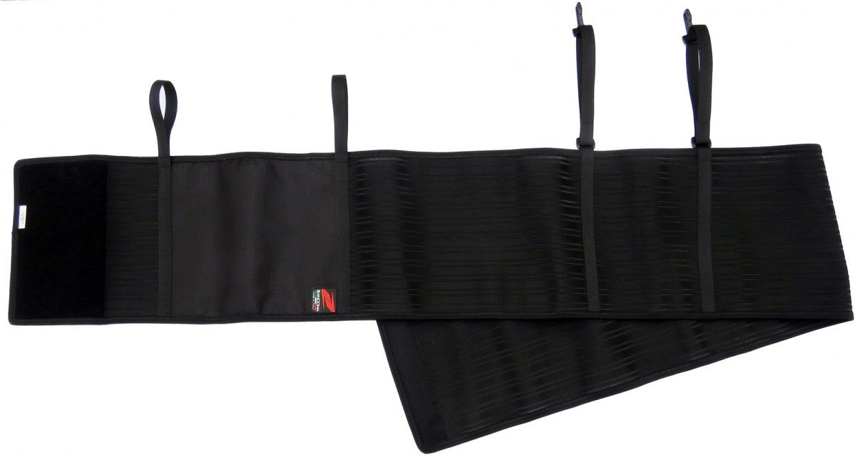 The belly bandage is equipped with two clips for the front of the saddle, four loops (two per side) to allow connection to every girth type and a velcro closure system for a perfect fit and to ensure the guard does not move.