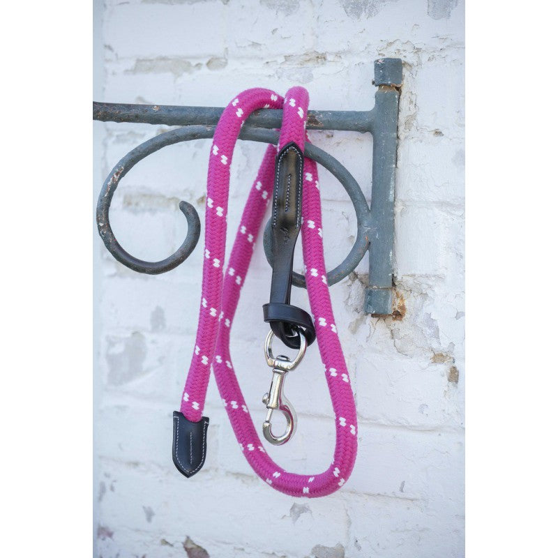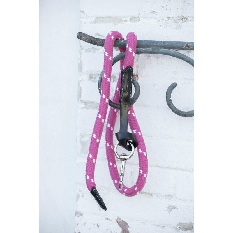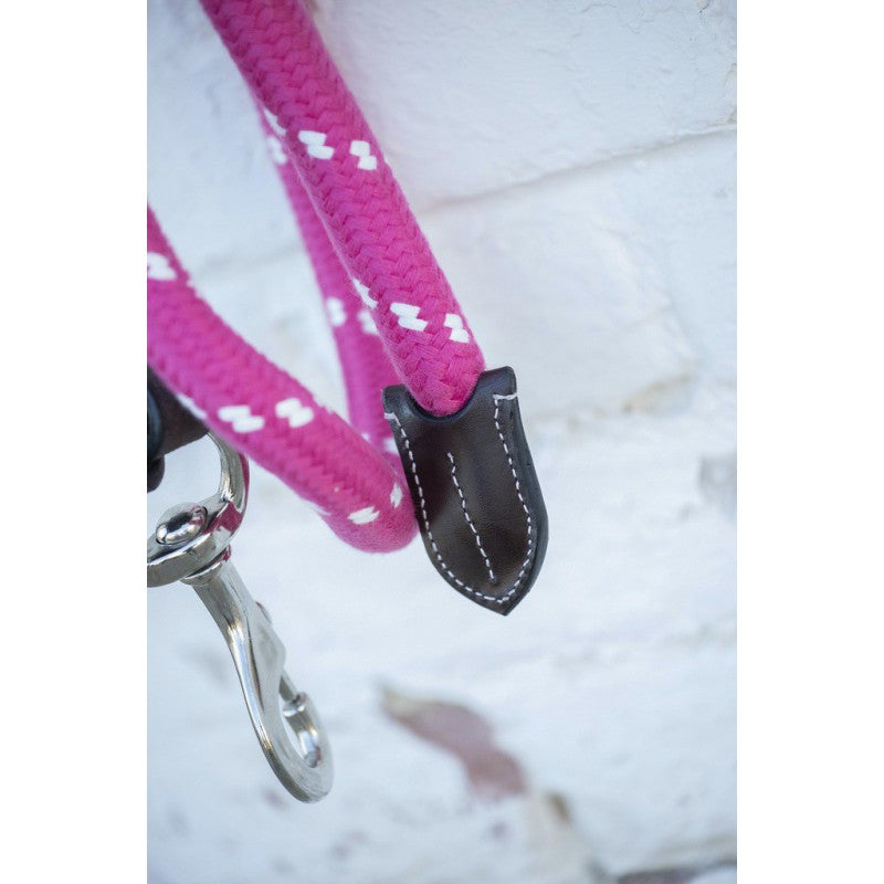 Penelope Lead Rope Corde - A girly lead rope, for every rider addicted to flashy pink! Here comes the Pénélope pink lead rope made of a wide and thick pink and white rope, fitting well into our hands. It is connected to the stainless steel thanks to a black or brown leather part. Leather part is thick but souple, since it is attached to the hook thanks to a knot. On the other part, to the lower part of the rope, is a leather end piece sewed on the lead rope, to make it look extra fancy. Collections Pénelope lead rope can match any halter to move the horse once out of the stable.