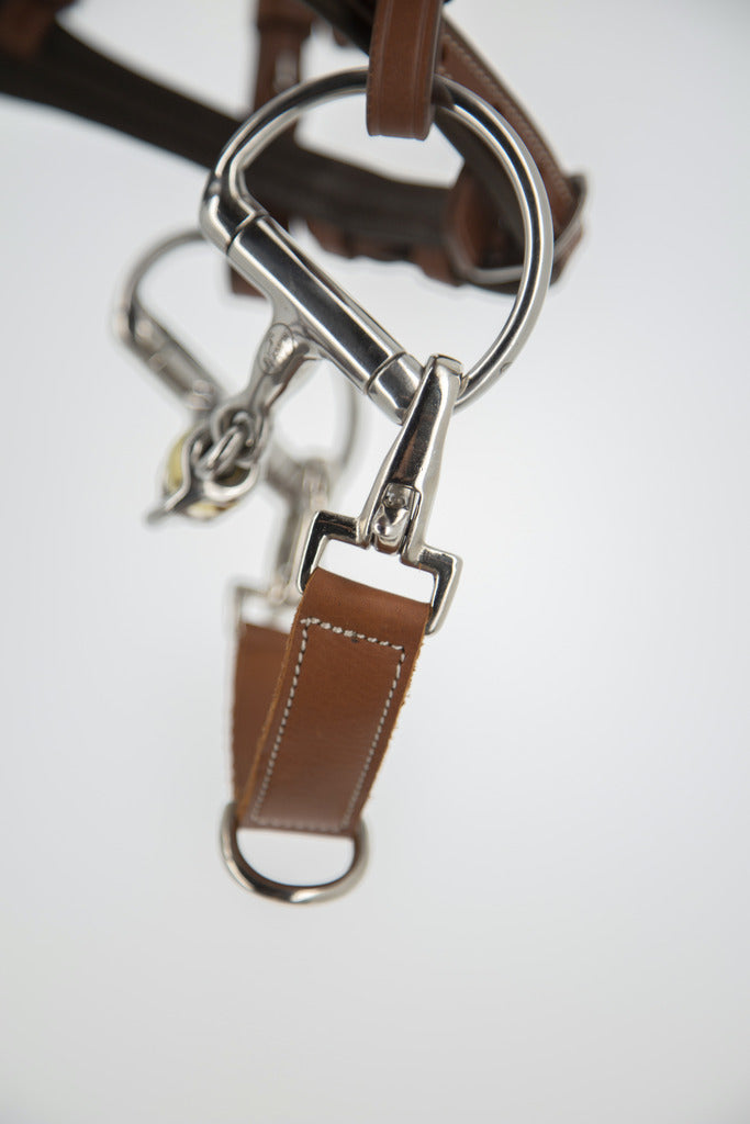 Penelope Alliance Lunge Loop - a smart device to connect both ends of the bit so you can lunge or hand walk your horses more easily. It can be used while lunging to change sides without changing the lunge. It can also be used to hand walk or show a horse. In both cases it is attached on both sides of the bit thanks to small stainless steel hooks. The rest is made of leather.