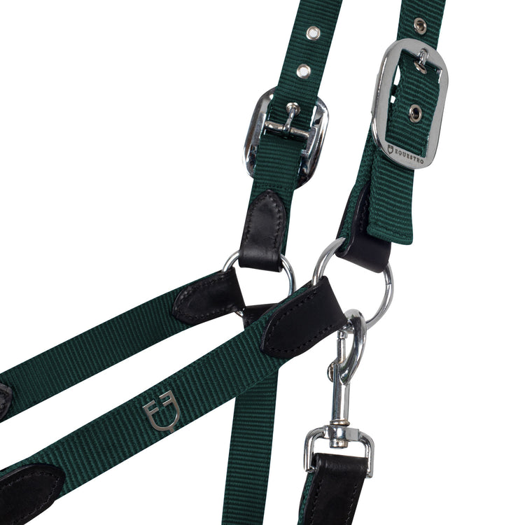 Equestro Anatomic Halter with Leather Inserts - this brilliant head collar features and ergonomic shaped headpiece for added comfort. The headpiece and noseband are made from leather with soft padding, whilst the remaining parts of the halter are made in stylish nylon for a great look. Adjustable on both sides for the perfect fit, the stainless steel fittings also ensure great quality. The halter includes a matching lead rope with leather finishes.