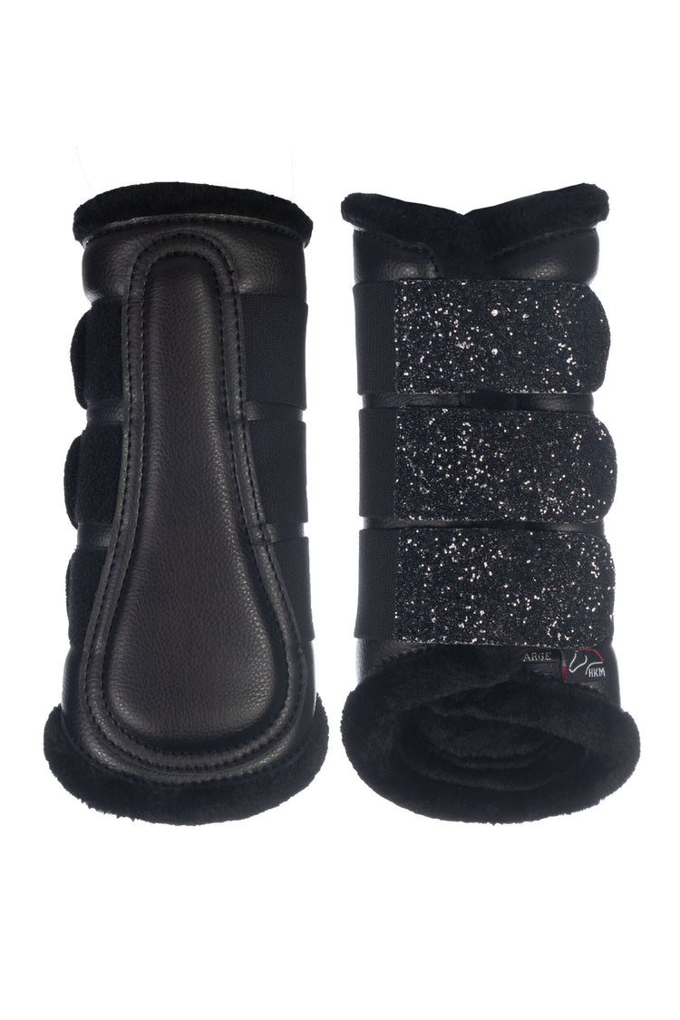 HKM Protection boots -Sparkle- - these brushing boots provide a great support and protection for your horses legs. They are equipped with a faux fur lining that is suitable for horses with sensitive skin as well. Furthermore, the velcro closures allow an easy and fast attachment to the horses legs. The glitter insert on the closure adds a little eye-catcher. These protection boots are perfect for your everyday training or turnout.