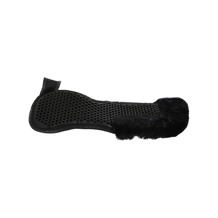 Acavallo Withers Free Hexagonal Soft Gel Pad with Memory Foam & Rear Sheepskin Edge - the perfect pad for horses with high wither! This pad doesn't compress the withers, ensuring your horse's comfort. The anti-slip, shock-absorbing and breathable Hexagonal gel further aids in your horses comfort and therefore performance. Aesthetically designed, with an anatomic shape, this pad will be the perfect partner for your saddle. It is an ideal pad for riders using custom-made saddles for their horse and for riders who want to feel the true benefit of an ultra-close contact. The saddle is cradled in luxurious sheepskin for a brilliant look. Because of its hexagonal gel structure, the air is compressed within the cells of the gel pad and expelled as the horse moves, creating a cushion under the saddle.