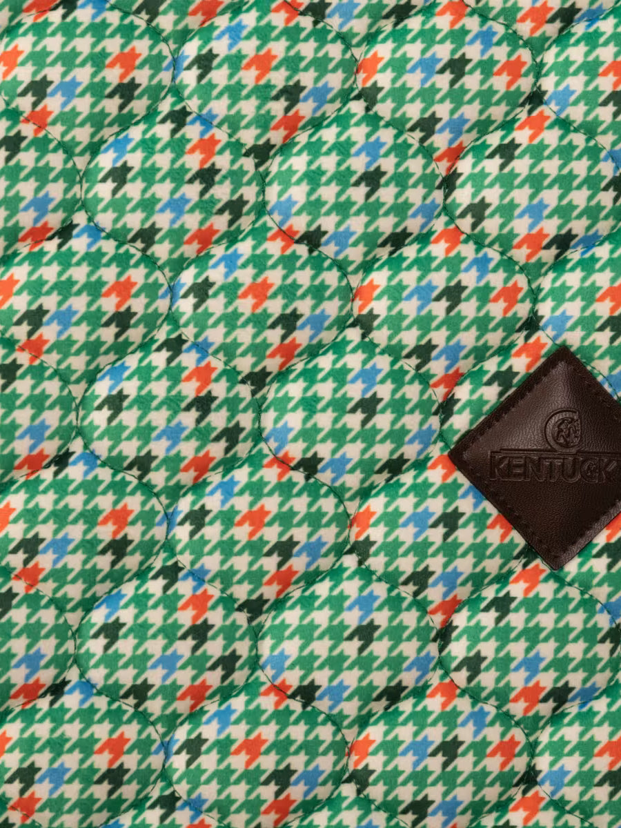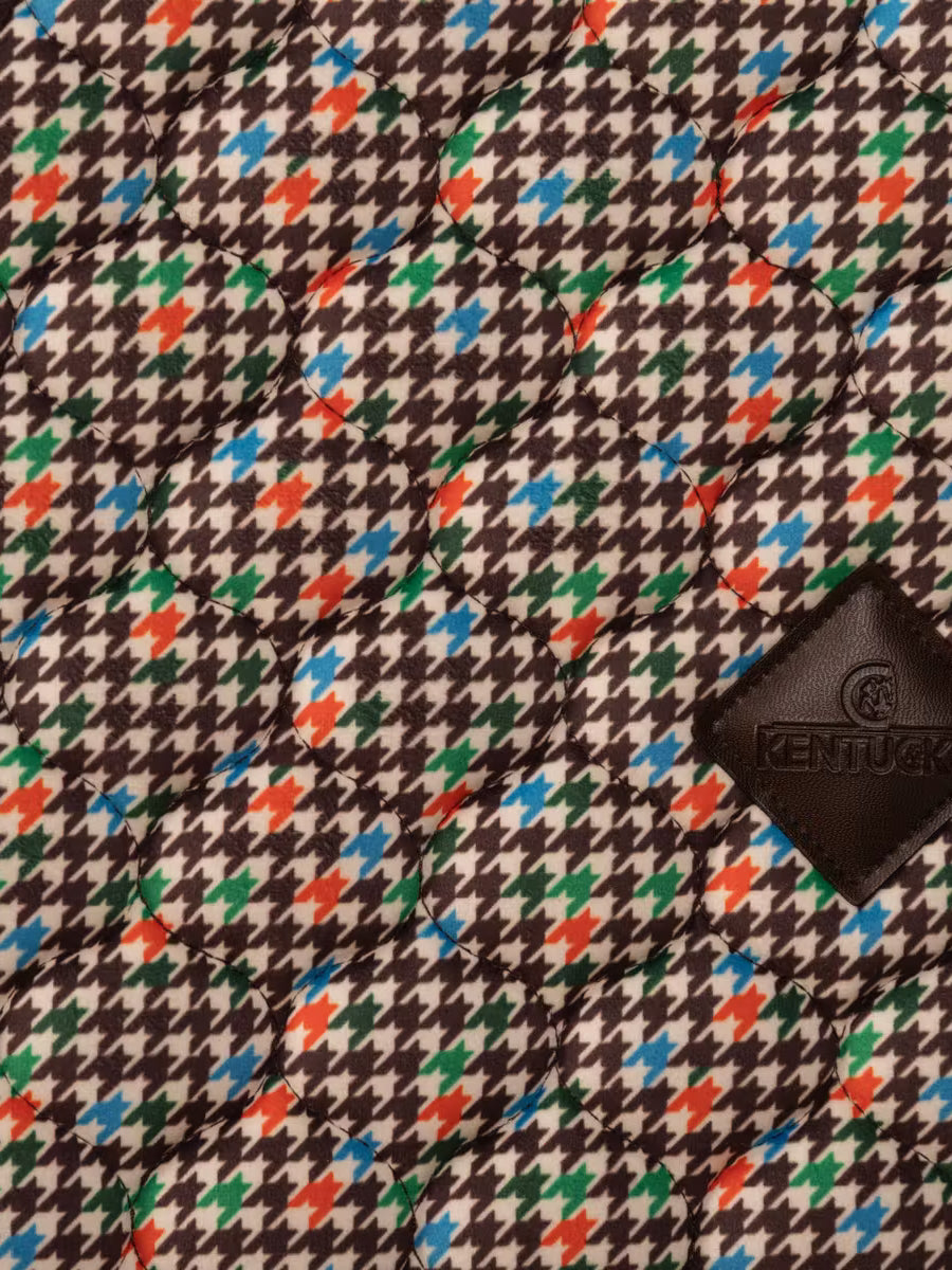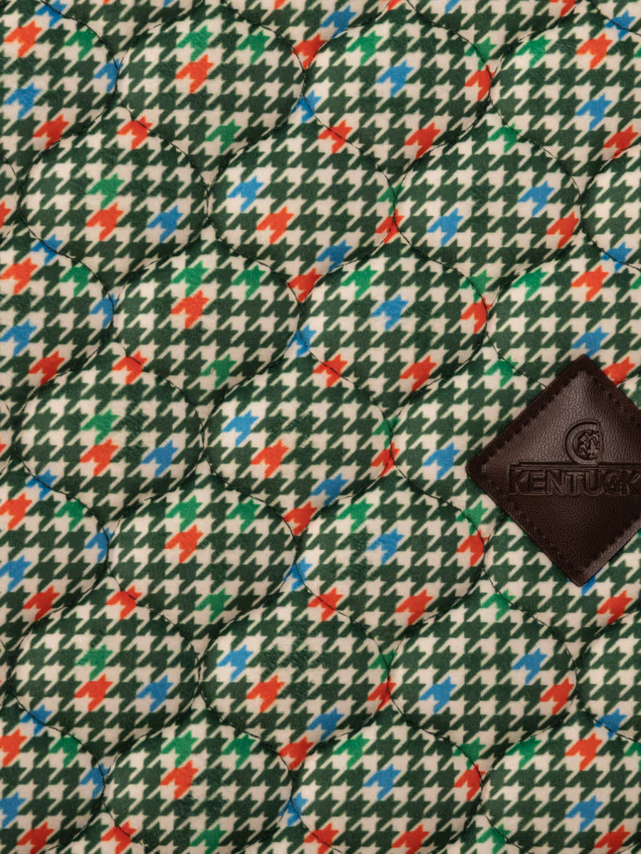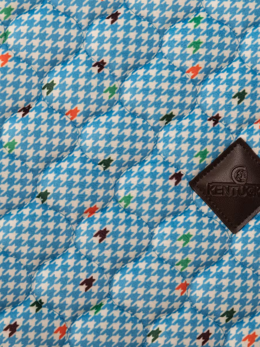 Kentucky Dressage Saddle Pad Velvet Pied-de-Poule - is a stylish and sophisticated dressage saddle pad featuring luxurious velvet fabric, a classic pied-de-poule pattern, and elegant double twisted piping. With its star quilting, jumping shape, and excellent cushioning, this saddle pad provides superior comfort and protection for both horse and rider during training and competitions.