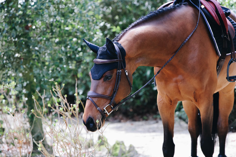 Kentucky Fly Veil Wellington - an incredibly stylish ear bonnet, offering your horse protection from annoying flies and insects. With a lovely square front finish it will give your horse a polished look when out competing or at home.