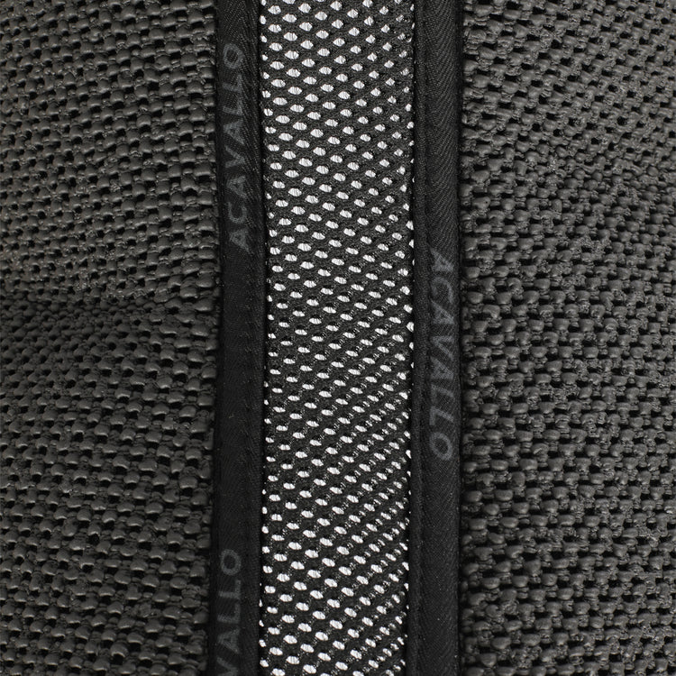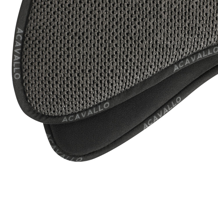 Acavallo Spine Free Close Contact Memory Foam Half Pad - A new spin on the classical spine free close contact & memory foam half pad by Acavallo. This special spine free half pad offers all of the benefits of Acavallo's famous memory foam pads and then some. The special 3D spacer spine free design allows your horse maximum freedom of movement and comfort, without any pressure on its spine. Its special design allows the pad to deeply shape itself to the silhouette of your horse, dispersing pressure evenly and absorbing shock. Furthermore, this pad also has the added benefit of the new Dama material it features, which is very functional, durable and easy to care for.