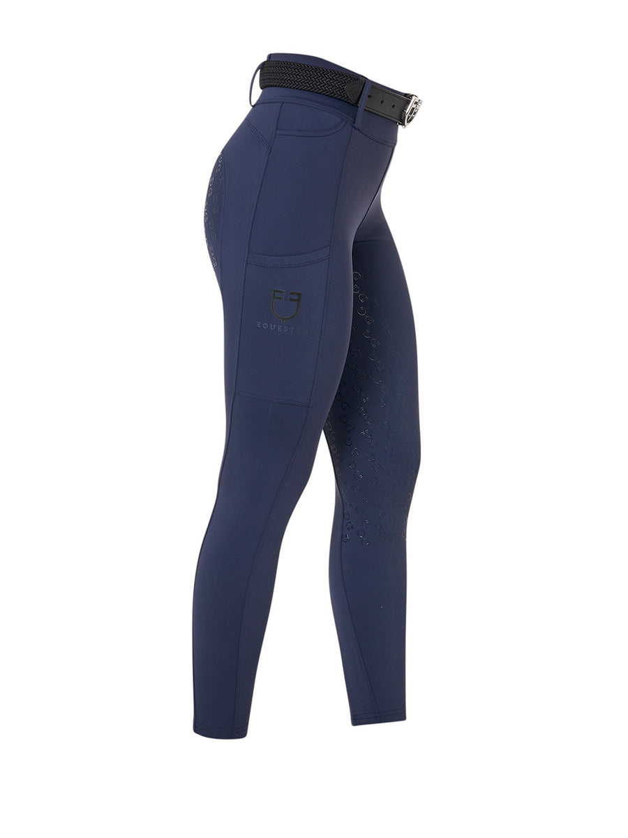 The stretch technical fabric is breathable and elastic, helping to regulate body temperature and providing a soft, secure feel against the skin. Perfect for year-round wear, the legging keeps you warm even on cooler days. A double side pocket adds practical storage for small essentials, finished with elegant Equestro logo prints for a refined look.