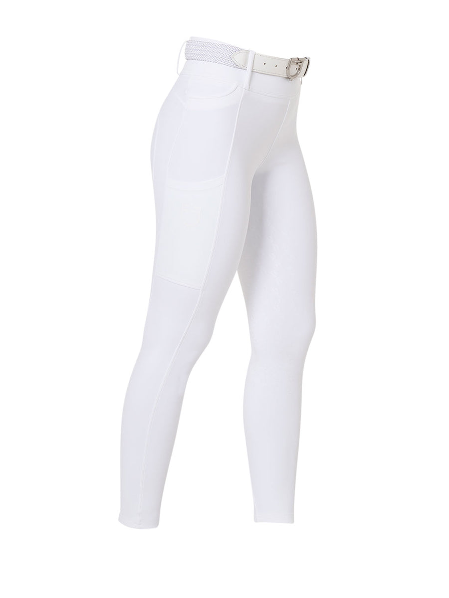 The silicone knee grip, extending to the back, ensures a stable and balanced seat in the saddle. Functional belt loops give the legging a polished, breech-like style, blending everyday comfort with professional performance.