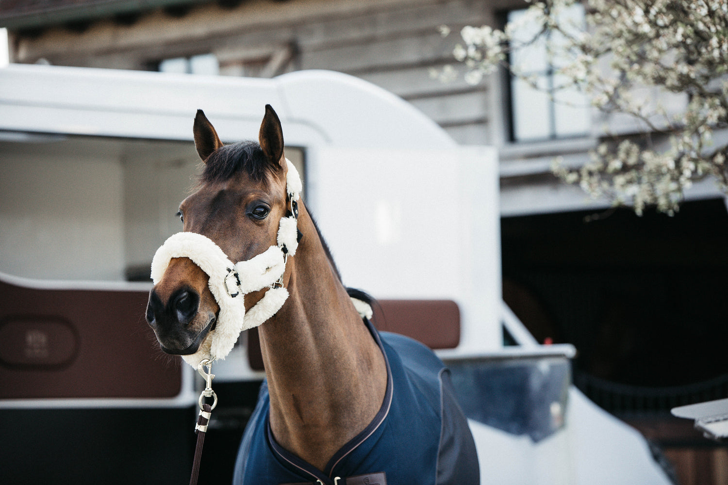 Kentucky Sheepskin Shipping Halter - the most popular and gorgeous shipping halter! This beautiful, softly padded, sheepskin halter is the perfect solution for long transports. The base of the halter is made out of super strong nylon, this in combination with Kentucky's special artificial sheepskin makes the halter very light, soft and strong. The light weight of the halter reduces poll pressure and makes it the most comfortable halter on the market for long transportation.