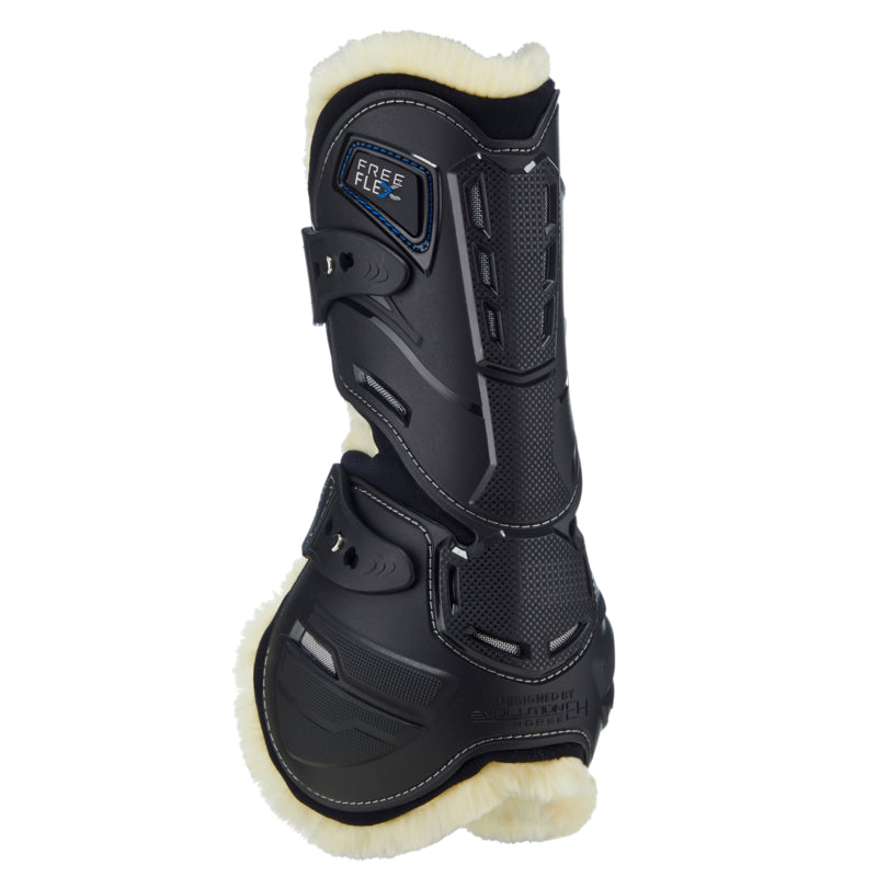 The latest Innovation in the Stübben & Evolution family. Designed to anatomically contour the tendon and fetlock for superior comfort and performance. The revolutionary cutaway injection mold design allows natural range of movement without interference, on and off the ground. Raised strike zones down the rear of the boot create impact protection with a multi vented design allowing ventilation throughout the boot for heat transference. Traditional soft shell and leather boots have always offered protection from brushing, but the down side was limited protection from a strike. This led to many Hard Shell designs which offer this protection, but due to the nature of the “hard shell” they limit the natural range of movement of the horse. The FreeFlex range has been developed to be the natural evolution of these products and the ultimate hybrid combining the best of all designs which have come before.