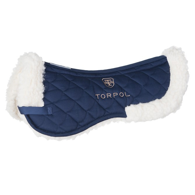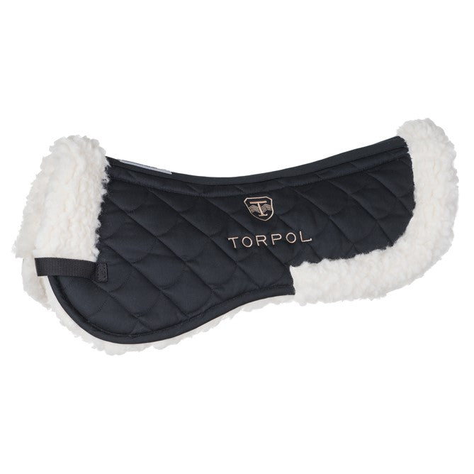 Torpol Nelson Magnetic Half Pad - Highly recommended for horses in training. Dorsal part lined with Nelson™ wool knitwear, which protects against bruises and provides a delicate micro-massage. Helps to keep a constant body temperature and allows breathing through the skin. Does not overheat nor cause excessive sweating. Made of durable, quilted denim fabric, resistant to abrasion.