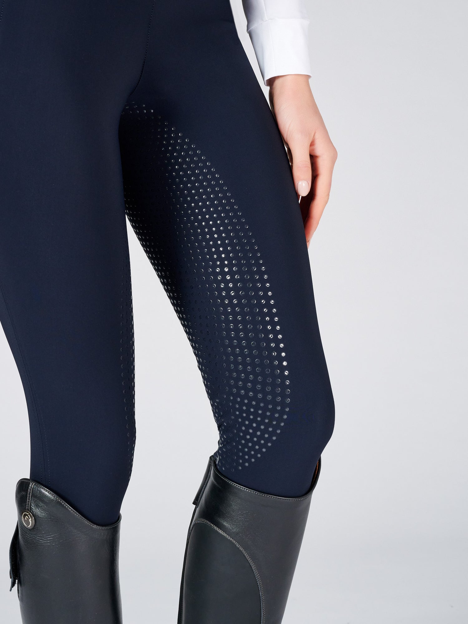Vestrum Coblenza Breeches Full Dots Grip - ladies’ high waist side zip riding breeches with silicone full seat. Brilliant women's breeches featuring a comfortable side zip to avoid pressure on your stomach when riding. The high waist also ensures a perfect fit, whilst the silicone full seat adds the perfect amount of grip in the saddle. Ideal for everyday riding, the soft and durable fabric allows complete freedom of movement. The perfect choice for everyday riding, you'll love wearing these breeches!