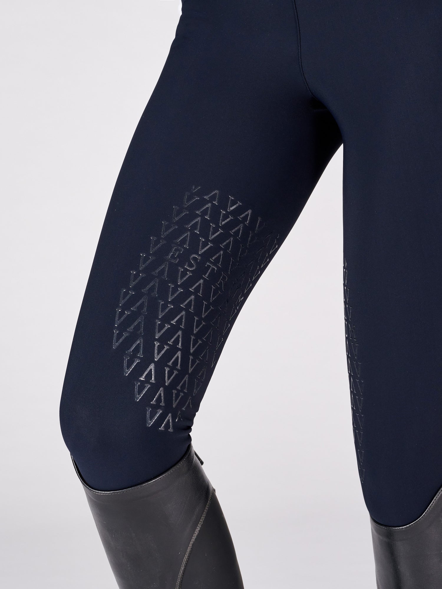 Vestrum Coblenza Side Zip High Waist Breeches with Knee Grip - women's high waist side zip riding breeches with silicone knee grip. Perfect for every day riding, these ladies riding pants offer a comfortable high waist with a side zip and button closure for complete comfort in the saddle. The 4-way stretch fabric allows complete freedom of movement when riding, whilst the silicone knee patches adds the perfect amount of grip. A small Vestrum logo on the left thigh adds the essential Vestrum touch.
