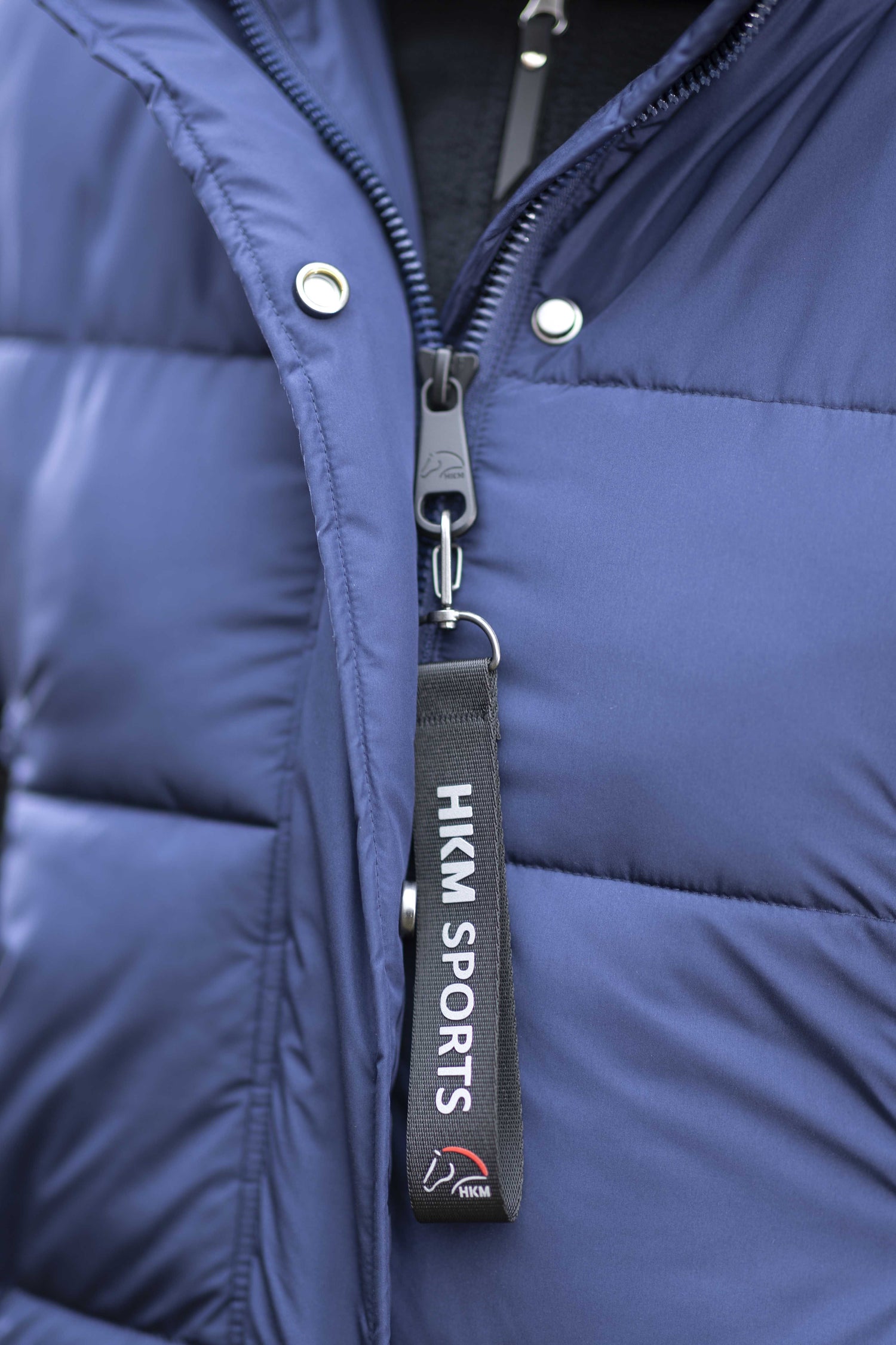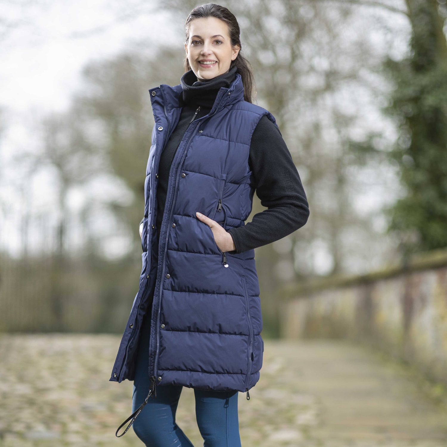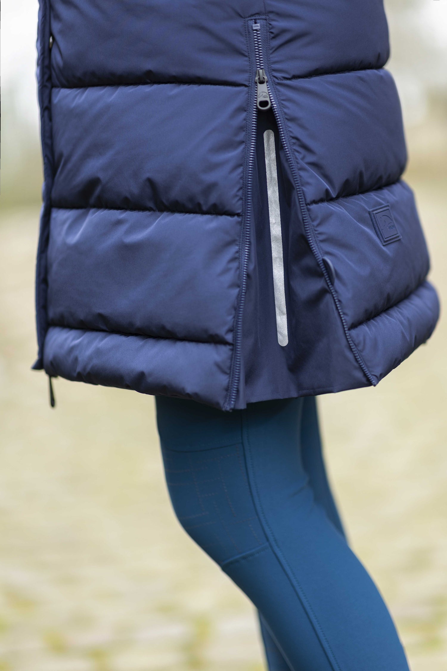HKM Long Vest Misty - this gorgeous padded long vest combines trendy style with practical features to meet the demands of equestrian sports. The water repellent vest boasts two extra large side pockets, accessible from both the top and the bottom and lined with warm fabric, making them ideal for storing your valuable or keeping your hands warm on chilly days. The right pocket features an elastic hook for securing keys or small items, ensuring your valuables are stored safely at all times when around the horses or walking the dog. The two-way zipper on the front means the vest is perfect for riding in, whilst the reflective detailing on the long side riding slits and the back improve visibility in low-light conditions.