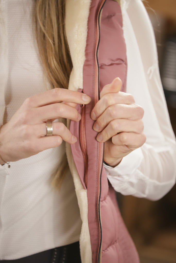 Penelope New Roge Vest - a signature piece from Penelope collection. This new version Roger Vest is even prettier and more comfortable. It's lined with ultra soft and warm fur-like fleece. You'll for sure fall in love with the vest once you feel the lining. The center zip is now in the same tone as the vest. The fabric has a slight glitter effect. It also features two zipped front pockets. The faux fur on the hood is removable. The waistband and large side panels are elastic to ensure absolute freedom of movement.