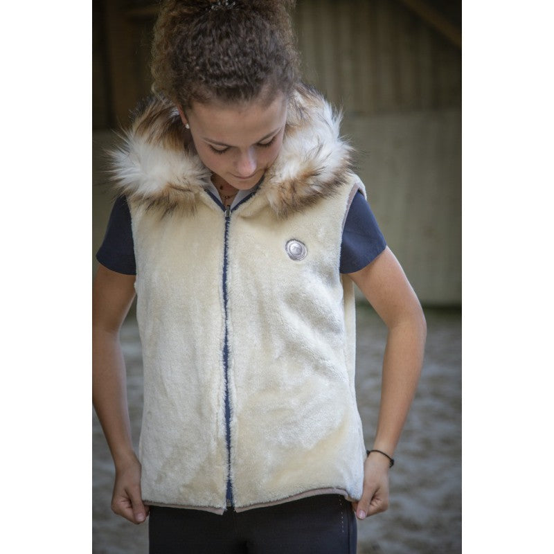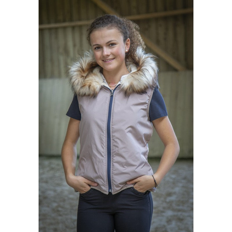 The sleeveless inner jacket has got a warm faux-fur edging along the hood. It is reversible one side features a very soft teddy fabric while the other side shows off with a sleeker material and a subtle shine.