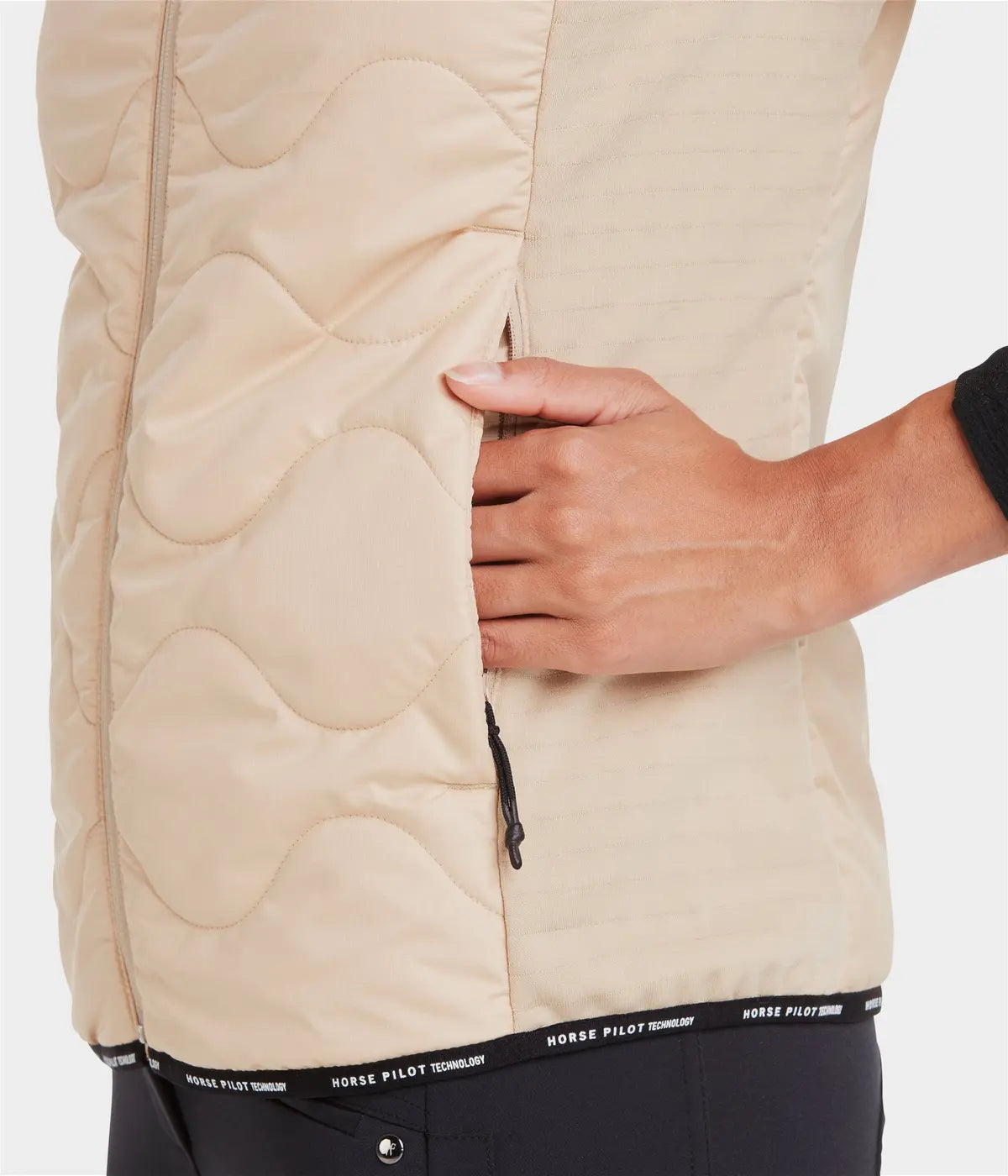 Horse Pilot Women's Rider Vest - made of two different materials, the construction of the Rider Vest down jacket provides a targeted heat supply and comfort according to the needs of the rider's body. Panels containing ultra-light, warm insulation are positioned where the rider needs the most heat on the chest and back. Fleece panels on the sides of the jacket allow you to move freely. Light and breathable, it can be worn over a sun shirt or sweatshirt in all seasons.