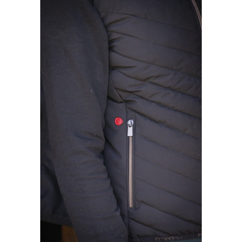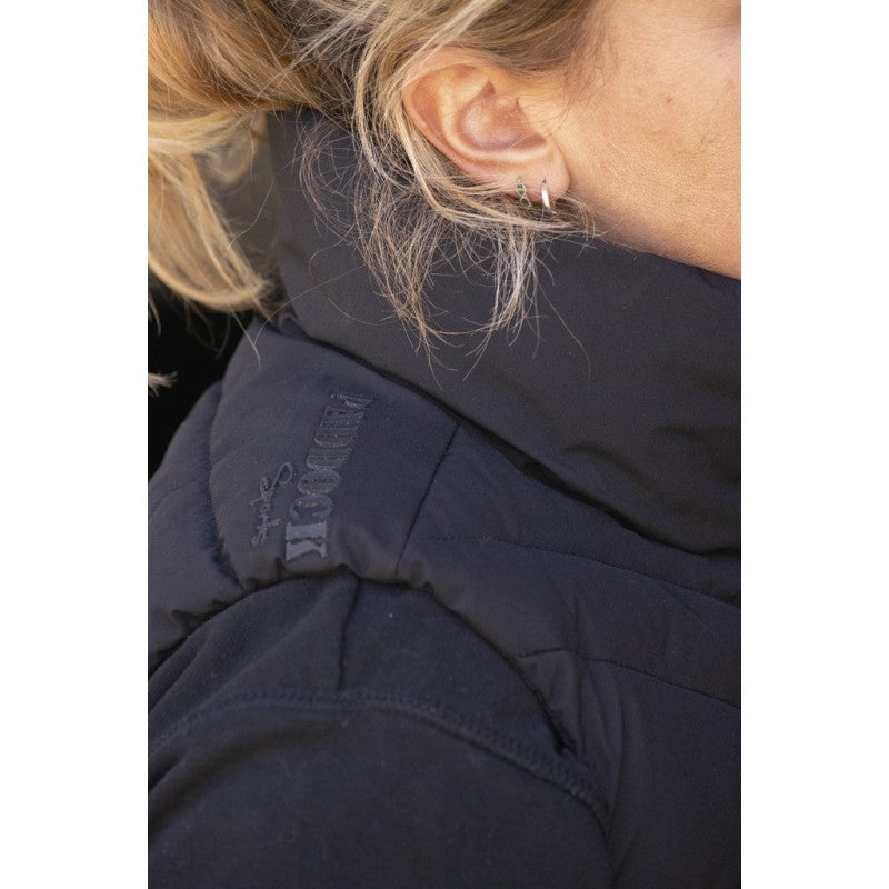 Paddock Unisex Vest Longueil - stay warm and look sharp with the Paddock vest, designed for both men and women. This unisex vest features a sleek front zipper and a matte tonal Paddock Sports silicone logo on the shoulder for a sophisticated, modern touch. The high collar ensures effective insulation against the cold, while two zippered front pockets offer practicality for your essentials. A unique red seal-like marking with a “P” adds a subtle yet distinctive detail on the right pocket.