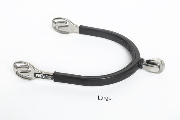 Rubber covered spurs with soft round rowel - Metalab spurs with rubber that creates more comfort, that helps to prevent slipping as well as prevents scratching on your precious boots or chaps. The angled strap openings allow more comfort while wearing the spurs and keep them im place without putting pressure on your foot.