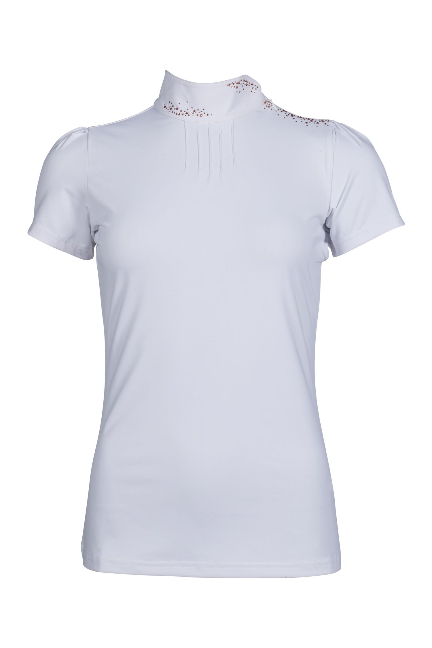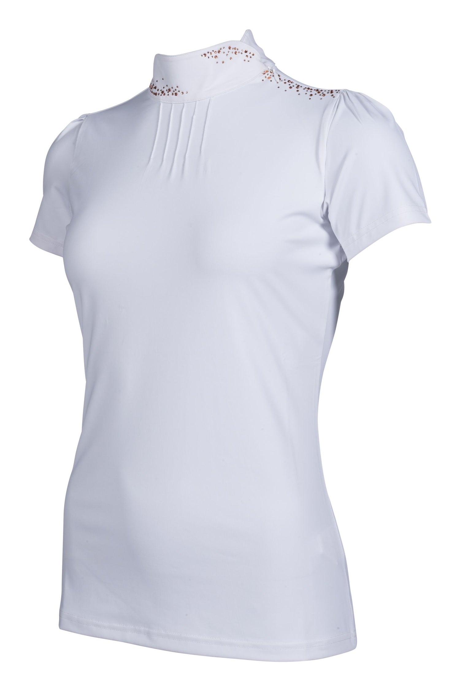 HKM Women´s Competition Shirt Darya - this stylish ladies short sleeve show shirt features a side zip closure for convenience and style. Highly breathable and quick drying, the shirt is elasticated to allow complete freedom of movement and comfort when competing. A crisp white collar with stylish rhinestone details that travel onto the shoulder give this shirt it's gorgeous look!