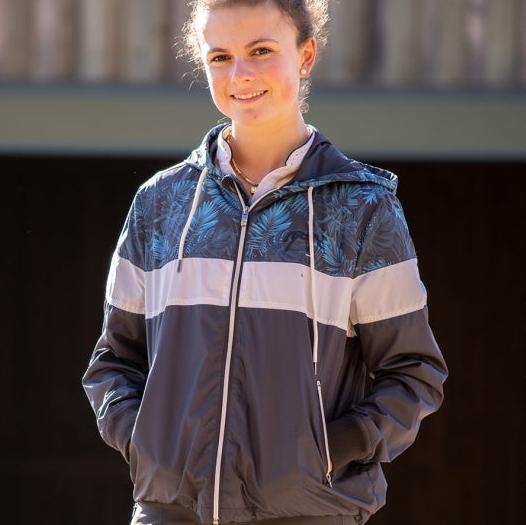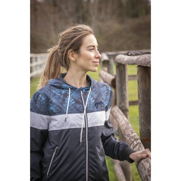 Penelope Celecce Jacke - Eine Regenjacke, die Ihre regnerischen Tage so viel heller machen wird. Die Penelope-Kollektionsjacke ist aus einem sehr leichten und weichen Stoff gefertigt, was die Regenjacke sehr angenehm zu tragen macht. Sie passt zu jedem Outfit, egal ob Reithosen oder Jeans. Die lockere Passform passt jeder Figur. Außerdem spricht das Design für sich. Die dreifarbige Blockoptik liegt voll im Trend und das Penelope-Pferdelogo ist im Brustbereich eingestickt. Die breite Kapuze lässt sich mit den Kordeln enger stellen und zwei Reißverschlusstaschen sorgen für ausreichend Platz für persönliche Dinge. Insgesamt eine trendige und dennoch praktische Regenjacke, die Sie brauchen.