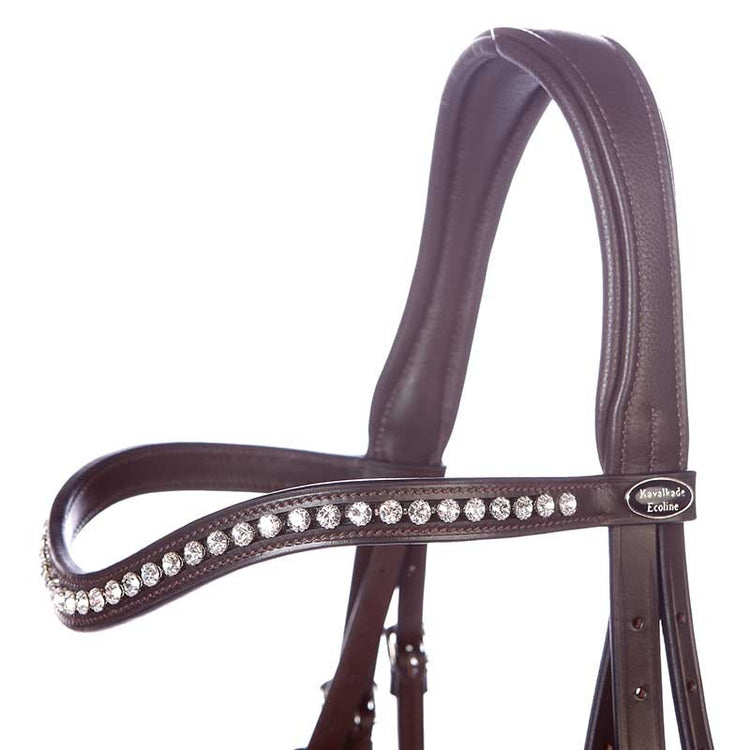 Trense Diana IR - diese anatomisch geformte Trense bietet ein gepolstertes Genickstück, um den Ohren die nötige Freiheit zu geben. Der spezielle "Flash-Strap" bietet ein innovatives Design, das die Freiheit der Atemwege ermöglicht. Ein atemberaubender, geschwungener Strass-Stirnriemen verleiht diesem wunderschön gestalteten Zaum den letzten Schliff.