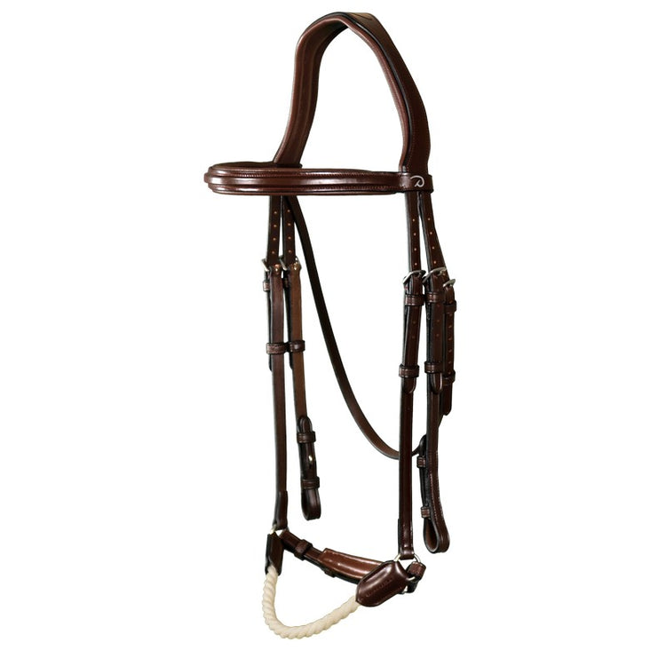 New English Collection Trense mit hannoverschem Taureithalfter - ein brandneues Design von Dy'on, das Reithalfter ist aus dem gleichen Material wie die Original Dy'on Trense mit Taunasenriemen gefertigt. Im Gegensatz zu vielen Standard-Nasenriemen erlaubt dieses innovative Design einen größeren Einfluss durch das Tau. Der Nasenriemen besteht aus drei gewachsten, gedrehten Strängen, während das Kopfstück anatomisch geformt und weich gepolstert ist, was eine größere Bewegung der Ohren ermöglicht und den Komfort Ihres Pferdes verbessert. Der Hannoveraner Nasenriemenzaum ist eine gute Wahl für Pferde, die sehr maulaktiv sind, oder für junge Pferde, die gerade anfangen, das Gebiss zu akzeptieren, aber bitte beachten Sie, dass es sich um einen Trainingszaum handelt.