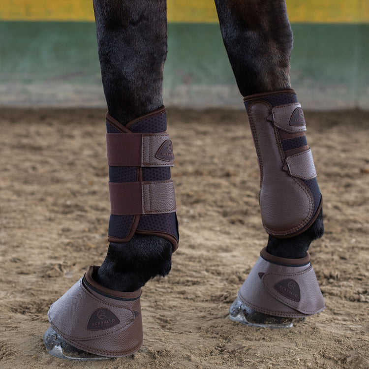 Acavallo Perforierte Neoprengamaschen Vorne – mit perforiertem Neopren und einer Kunstlederverstärkung im inneren Schlagbereich sind diese Gamaschen atmungsaktiv und bequem. Ideal für das tägliche Training und die Weide, die anatomische Form garantiert eine perfekte Passform, maximalen Komfort und vollständige Bewegungsfreiheit für Ihr Pferd.