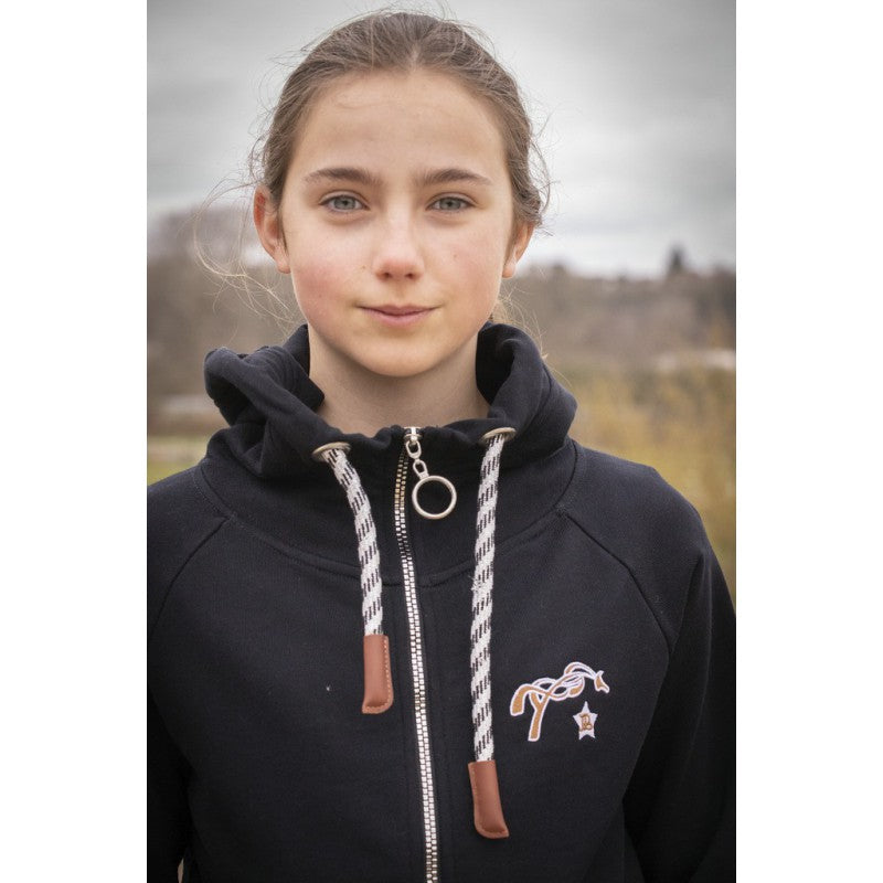 Penelope Collection Sweater Comète - ein stylischer Langarmpullover mit Reißverschluss und hohem Kragen. Außerdem verfügt dieser Pullover über zwei Fronttaschen, die mit einem Reißverschluss geschlossen werden können, und einem gestickten Logo auf der linken Schulter. Der breite rosa-weiße Kordelzug, der aus dem Kragen kommt, verleiht dem Look eine besondere Note. Die Farbtöne der Stickerei passen perfekt zu diesem Pullover. Die Passform ist tailliert und feminin.