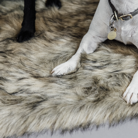 Hundebett Fuzzy Blanket to Go - dieses luxuriöse Hundebett ist ideal für Tagesausflüge oder wenn Sie nicht zu Hause sind. Das Bett ist aus superweichem Waschbärfellimitat mit einem starken Polyesterleinen auf der Außenseite. Die Außenseite der Decke ist wasserdicht, was es zum idealen Bett auf Reisen macht. Das Bett kann aufgerollt und mit einer Kordel getragen werden.