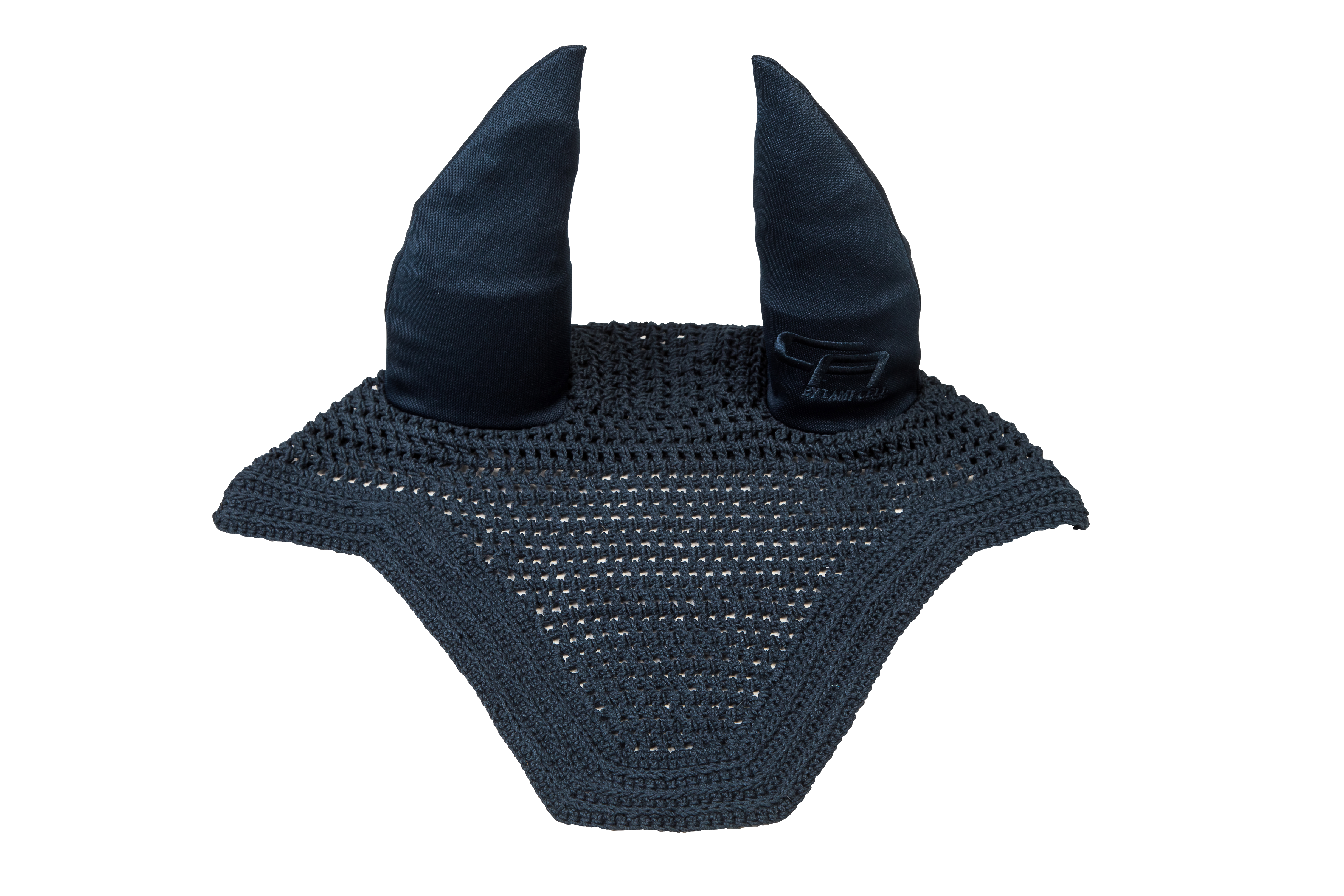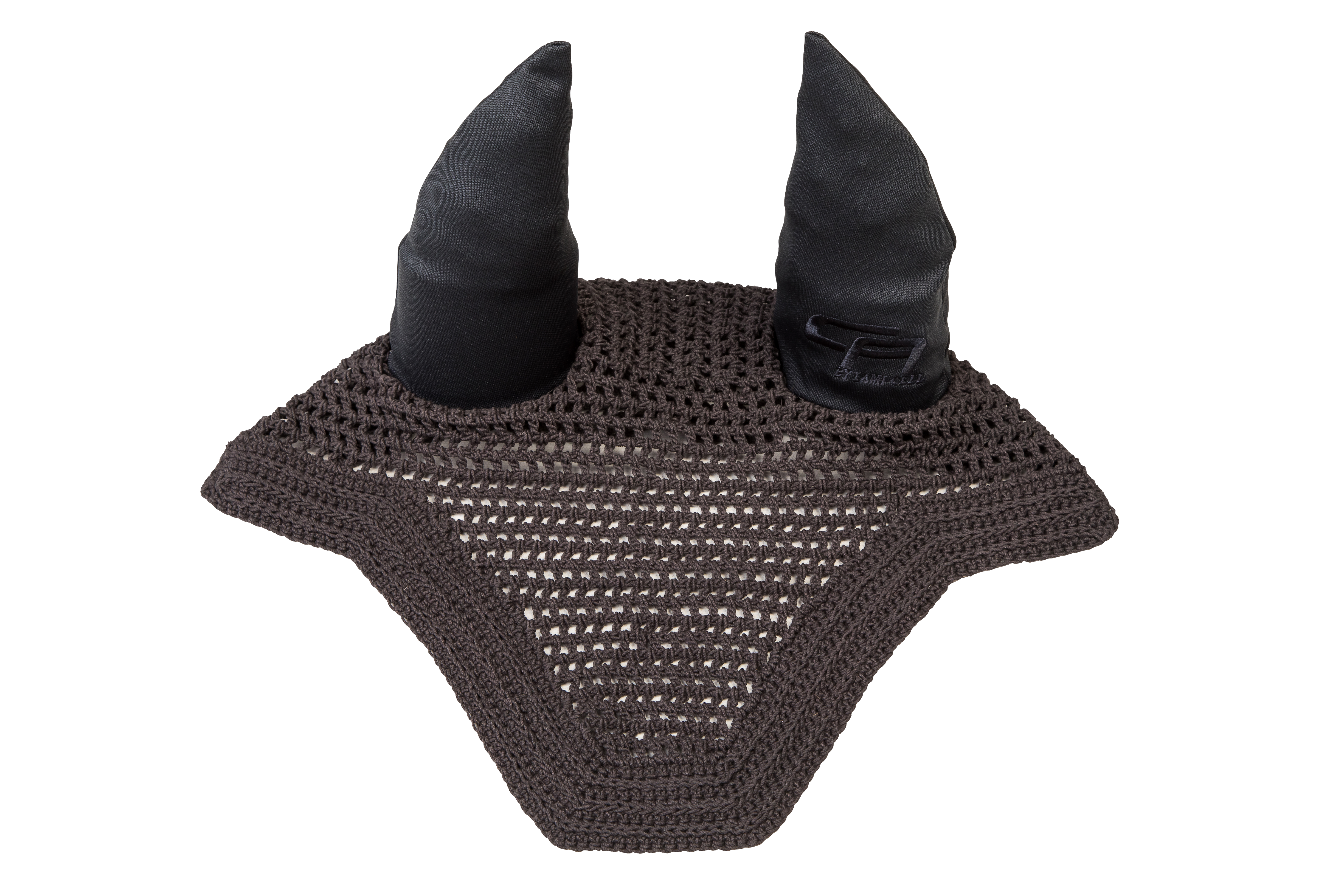 Bei jungen oder sehr empfindlichen Pferden empfehlen sich Fliegenhauben mit Lärmdämpfung. Der untere Bereich der Mütze ist etwas schwerer und liegt ruhiger, während die Ohren dicker abgepolstert sind. Natürlich kann das Pferd noch hören, was um es herum passiert, der Turnierlärm ist aber nicht mehr so intensiv und einfacher zu verarbeiten.