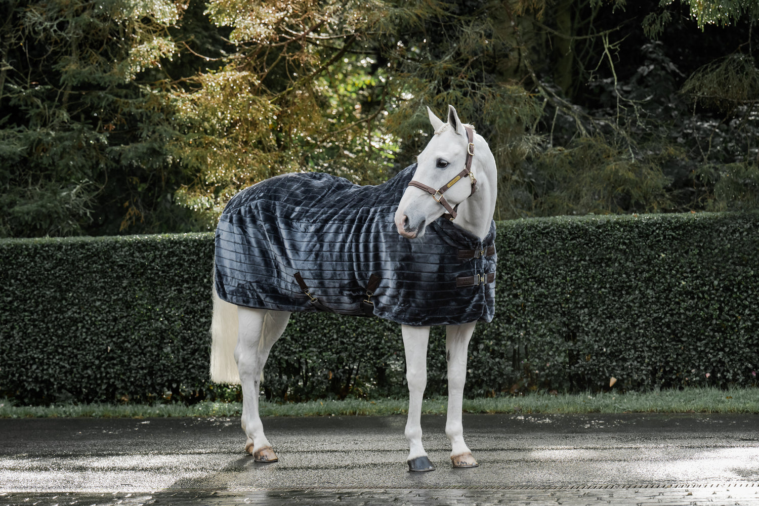 Ausgestattet ist Sie mir doppelten Verschlüssen auf der Vorderseite und zwei abnehmbaren Kreuzgurten, wodurch sie sich auch als Turnierdecke eignet.