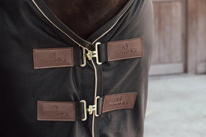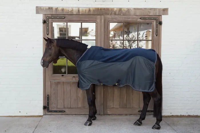 Kentucky Fleece Mesh Combo Abschwitzdecke – die perfekte Kombination aus Funktionalität und Komfort für Ihr Pferd. Diese Decke mit luxuriösem Fleecefutter auf der Rückseite zur Schweißabsorption bietet außergewöhnliche Wärme und Komfort für die empfindlichen Muskelpartien Ihres Pferdes, einschließlich Rücken und Schultern. Der Rest der Decke besteht aus dem Stoff der Fliegendecke.