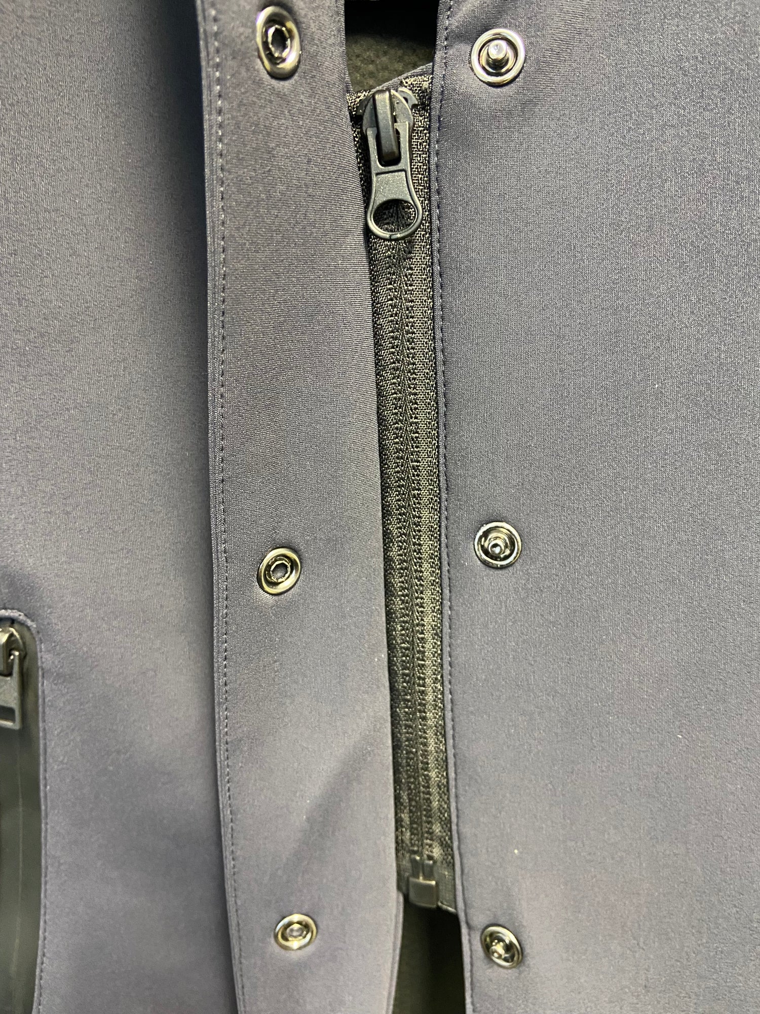 - Versteckter Reißverschluss hinter den Knöpfen